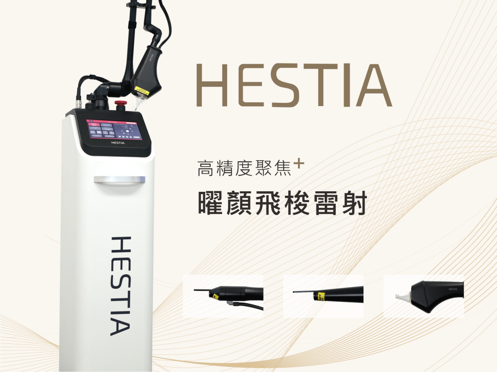 HESTIA 是一款皮膚科用雷射設備,配備三種探頭,分別為:二氧化碳分段雷射探頭、手術探頭與私密探頭。三合一的平台設計提供多功能應用,讓皮膚治療更有效率且具高效能。